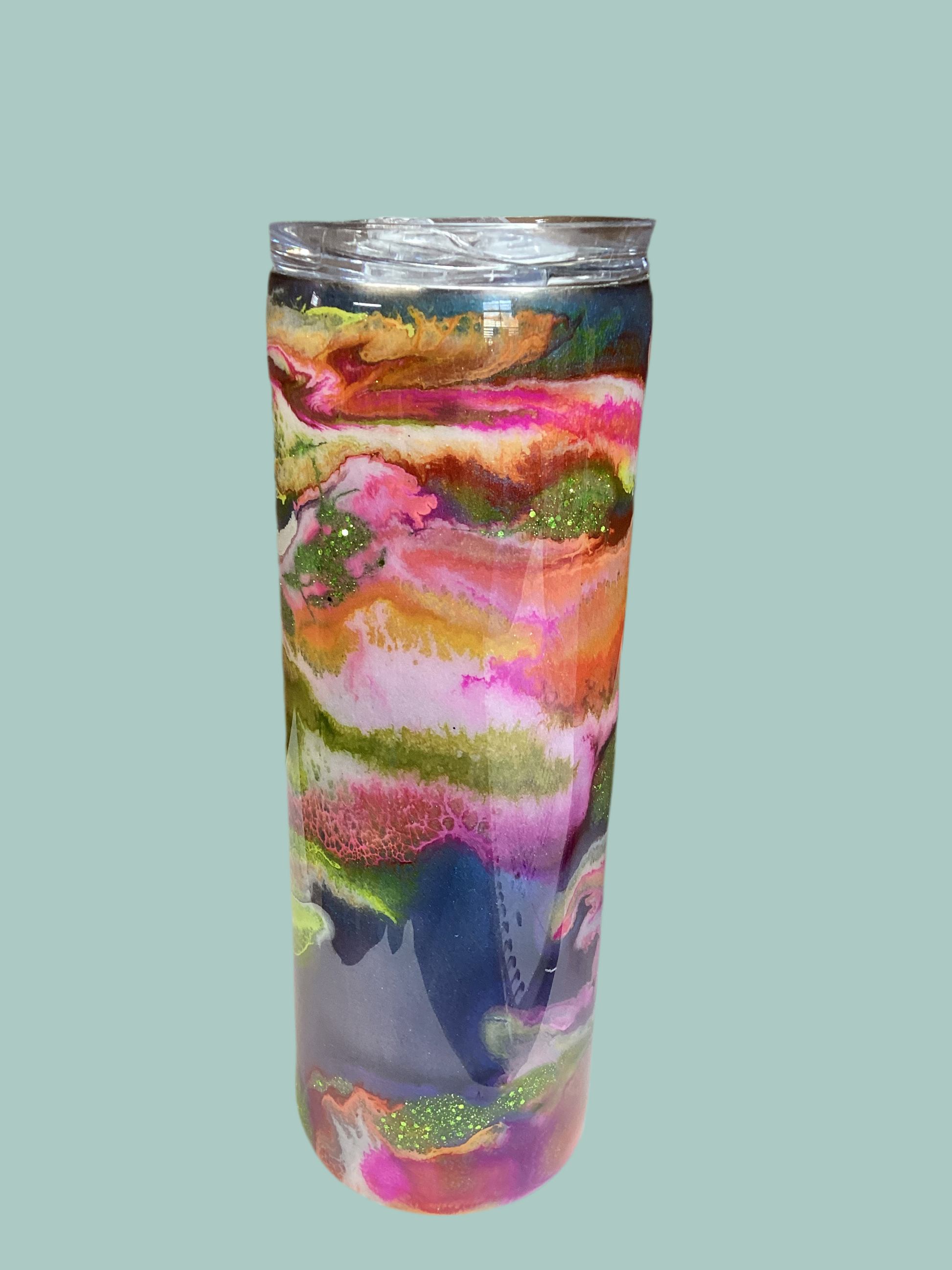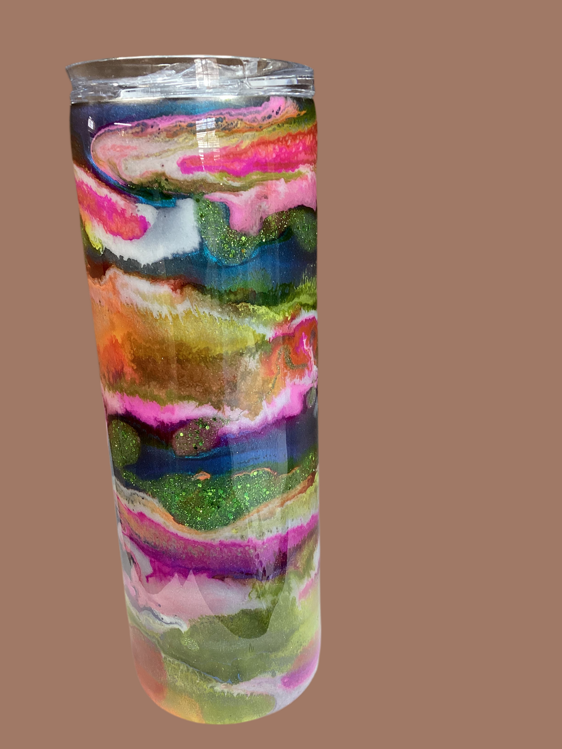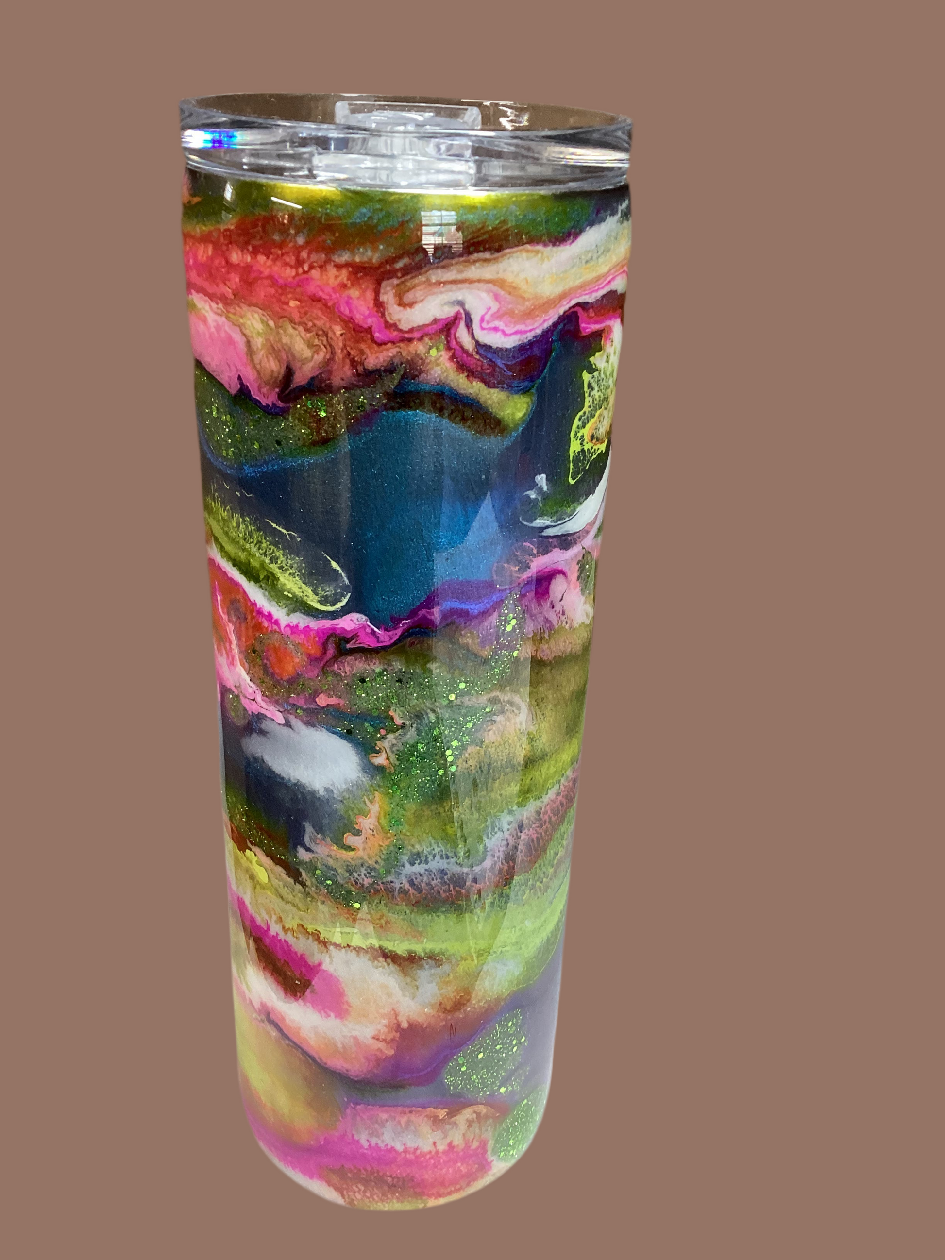 20 oz. Tumbler with a chameleon base . Multi- color Alcohol inks.