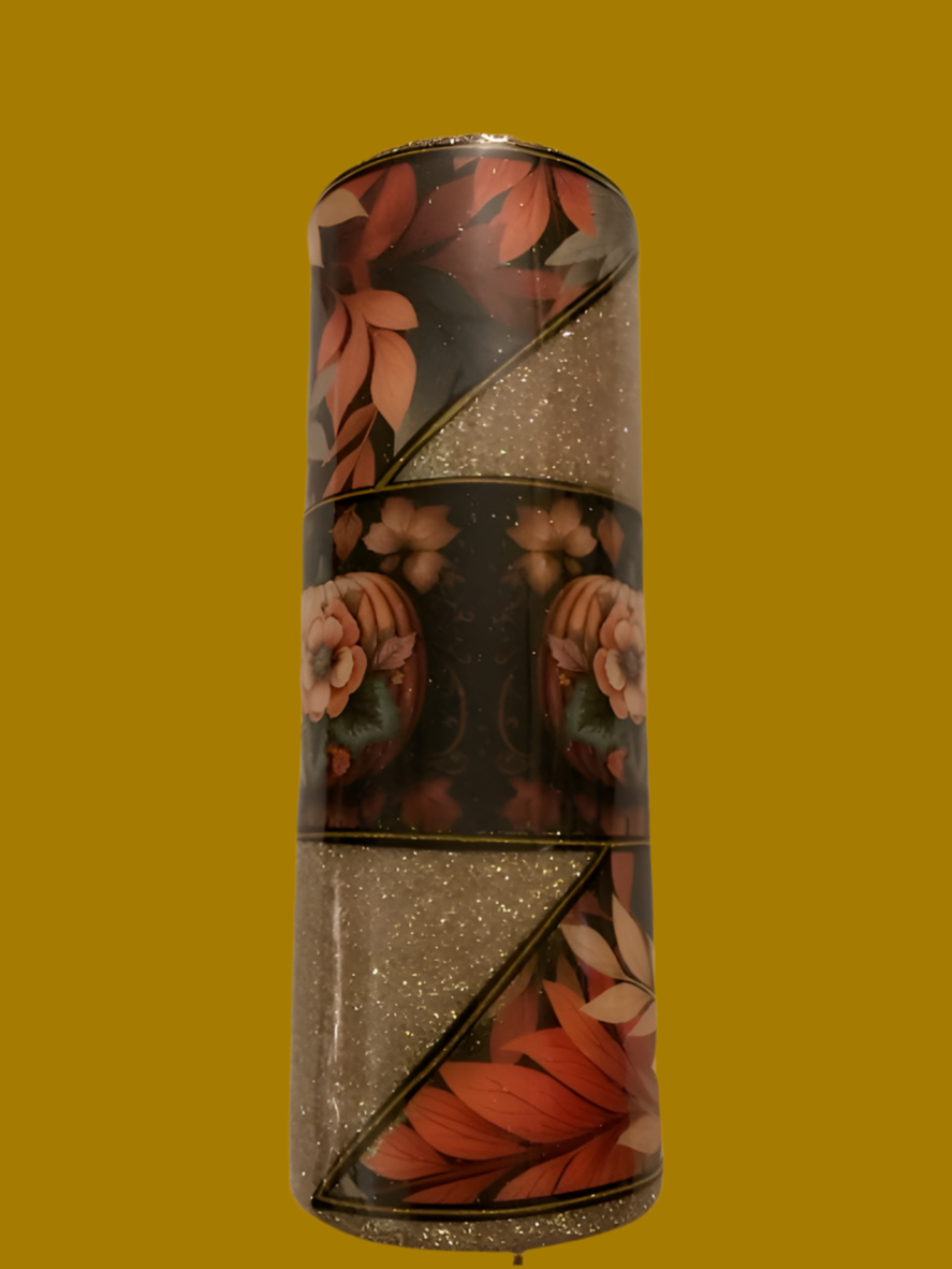 20oz. Stainless steel double wall insulated, designed with vinyls and glitter, finished with epoxy
